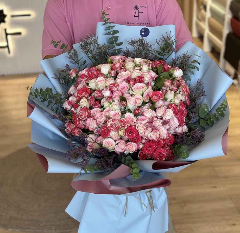 - محتويات الباقة: تحتوي الباقة على 100 وردة، يمكن اختيار عدد الورود على حسب الطلب