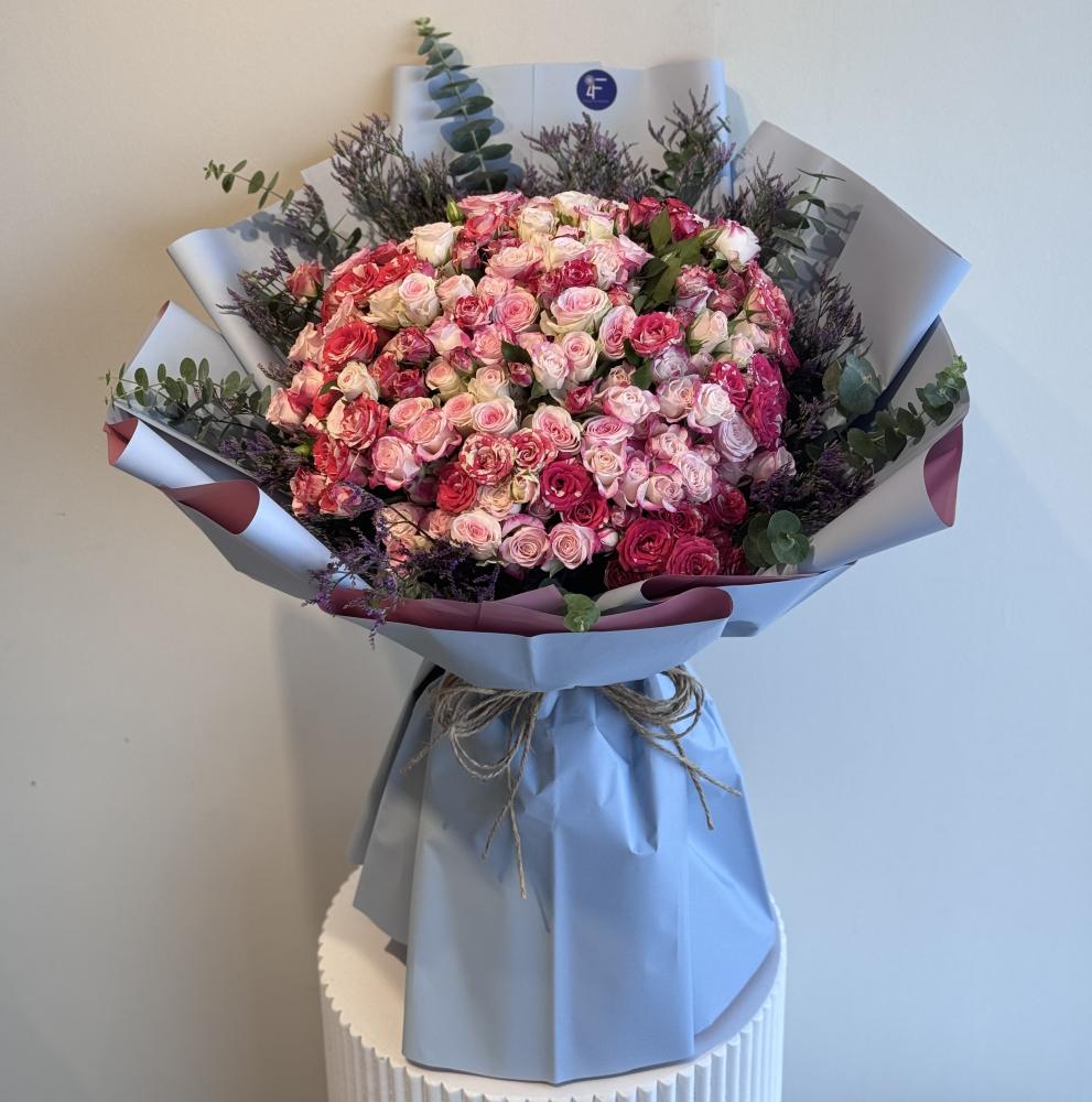 - لون تغليف باقة ورد كبيره: تغليف لون بينك، يمكن اختيار لون التغليف على حسب ذوقك الشخصي.